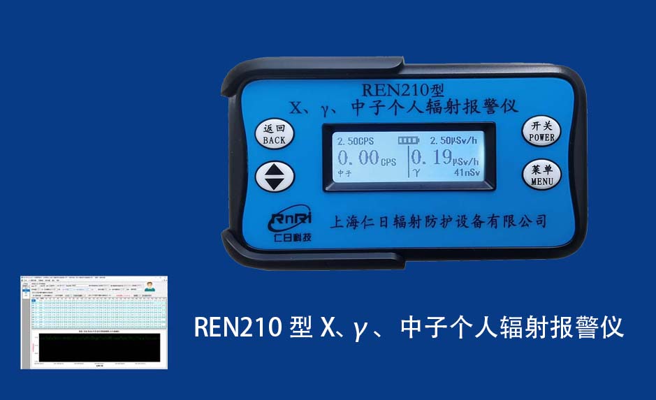 REN210 個人計量報警儀REN210型X、γ、中子個人輻射報警儀內置SiPM和鋰玻璃晶體組成中子探測器儀器,采用反照率方式探測中子射線,同時也能探測X、γ射線。因此它可同事監檢測X、γ、中子三種射線。能顯示工作場所的劑量當量率和累積劑量,更換電池時,日期及累積數據能永久保存?蛇x配RenRiPersonal個人劑量管理軟件,該軟件可存儲多個人的歷史數據,能記錄日累積、月累積、年累積、輻照時長、計算平均劑量率、扣除或不扣除本底輻射,且以文字和圖譜的方式展現數據。廣泛應用于環保、化工、水泥、煤礦、土木工程、石油、醫院、疾控、進出口商檢、核電、加速器、機場、中子源庫和其他安檢、邊境控制海關檢測等領域中的工作人員進行個人安全防護監測及放射性提示。